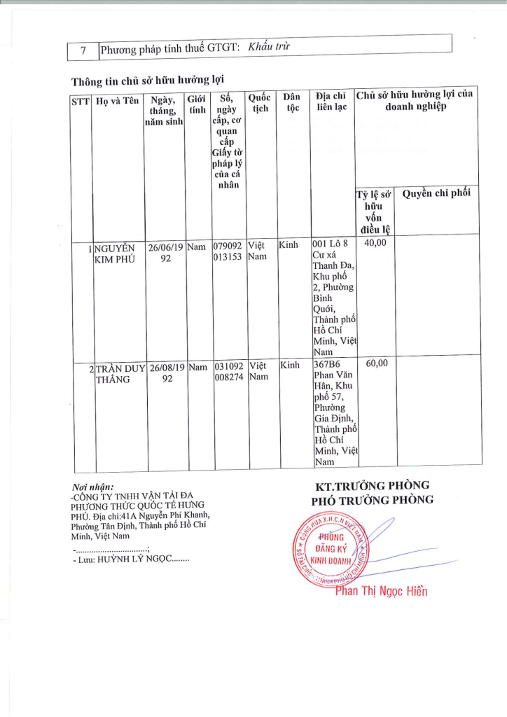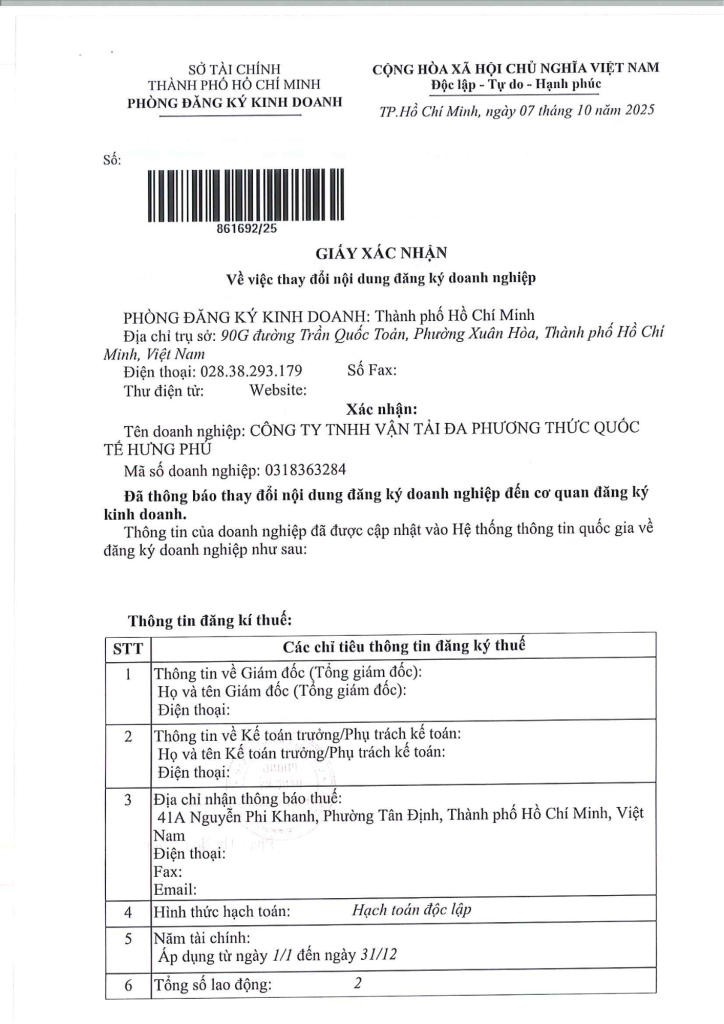 CÔNG TY TNHH VẬN TẢI ĐA PHƯƠNG THỨC QUỐC TẾ HƯNG PHÚ